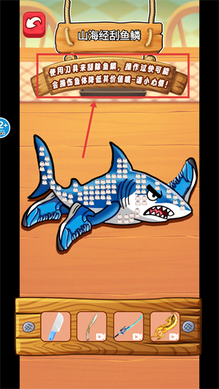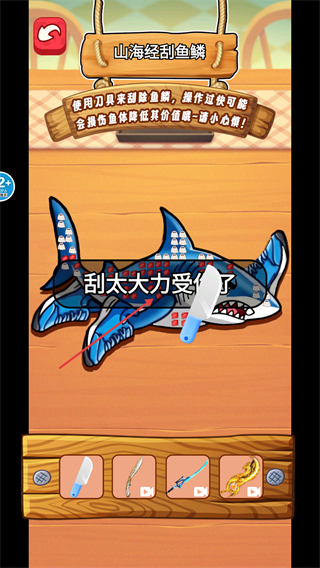1、设计多种怪异鱼类造型,每种配备独特鱼鳞样式与刮鳞逻辑,提升互动趣味性与策略性。