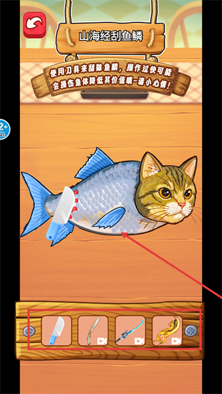 4、遇到【鱼猫】这类山海异兽时,选择合适工具平稳刮鳞,完成后可获取丰厚奖励。