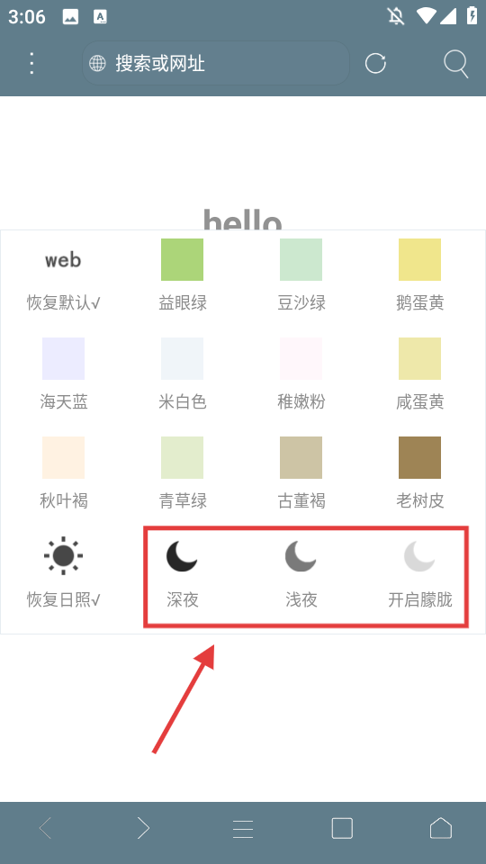 2、点击【护眼/夜】,进入护眼模式选择页面。
