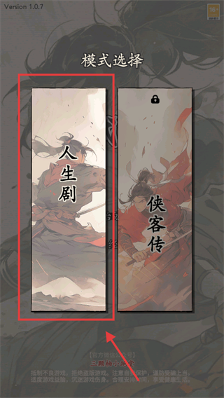 1、进入游戏选【人生剧】模式,开启武侠养成之旅,体验江湖人生成长。