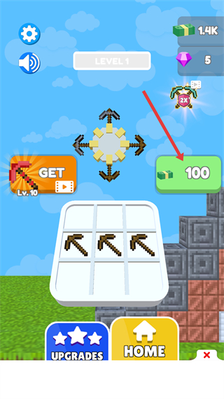 1、点击【100】金币按钮,获取挖矿工具,为挖掘任务准备资源。