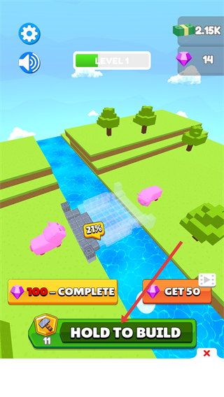 4、点击【HOLD-TO-BUILD】按钮,利用资源建造设施,推进游戏进程。