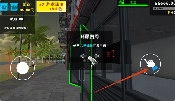 1、游戏开始时,按照提示使用右手拇指环顾四周,熟悉操作方式,同时关注屏幕中的教程提示完成操作。