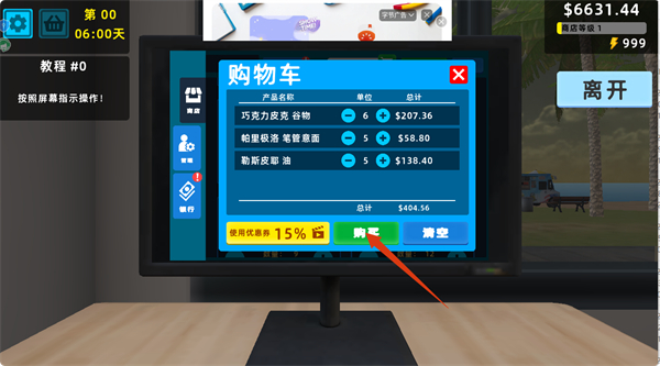 3、在购物车界面,确认所选商品的数量和总计金额,点击【购买】按钮完成交易,注意可使用优惠券享受折扣。