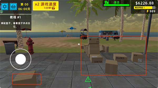 4、购买完成后,按照教程提示拿起盒子,点击盒子进行操作,完成后续的货物处理流程。