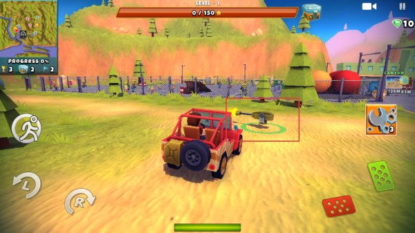 4、靠近场景中的武器道具并拾取,增强车辆能力,持续推进关卡。