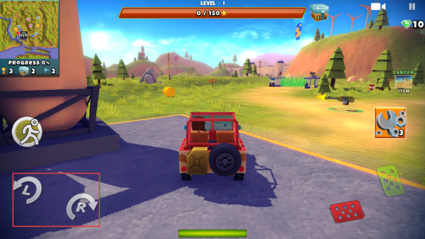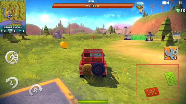 2、操作转向按钮控制车辆行驶方向,推进关卡的进度条。