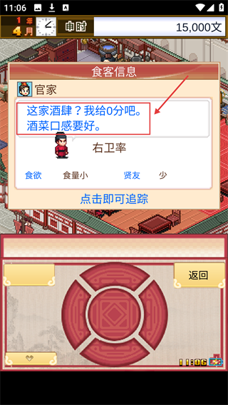 3、不同食客有不同喜好,提升满意度涨酒肆排名,用个性化互动平衡经营与社交维度。