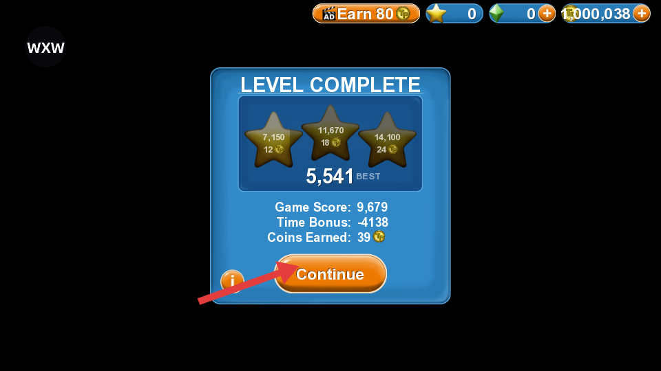 4、点击【Continue】,继续下一关,挑战更高分数。