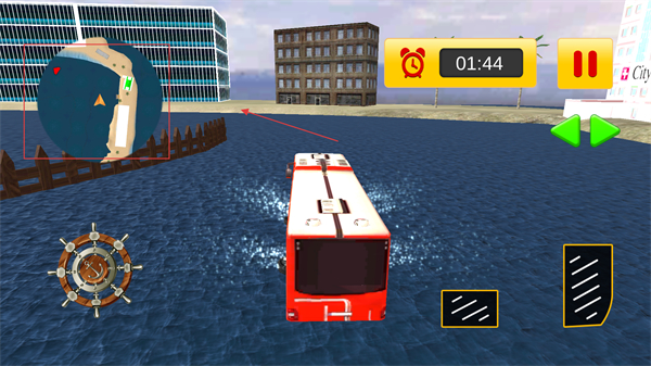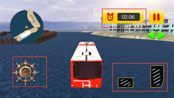 3、通过方向盘控制巴士的行驶方向,利用加速和减速按钮调整行驶速度,注意水上行驶的操控技巧,避免偏离航线。