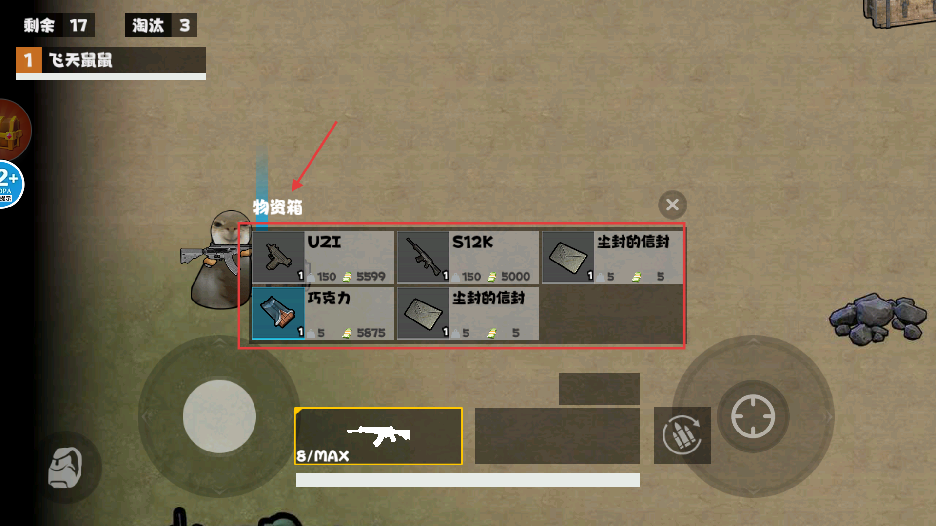2、打开【物资箱】可获取【U21】-【S12K】等武器及【巧克力】补给,快速提升战斗与生存能力。