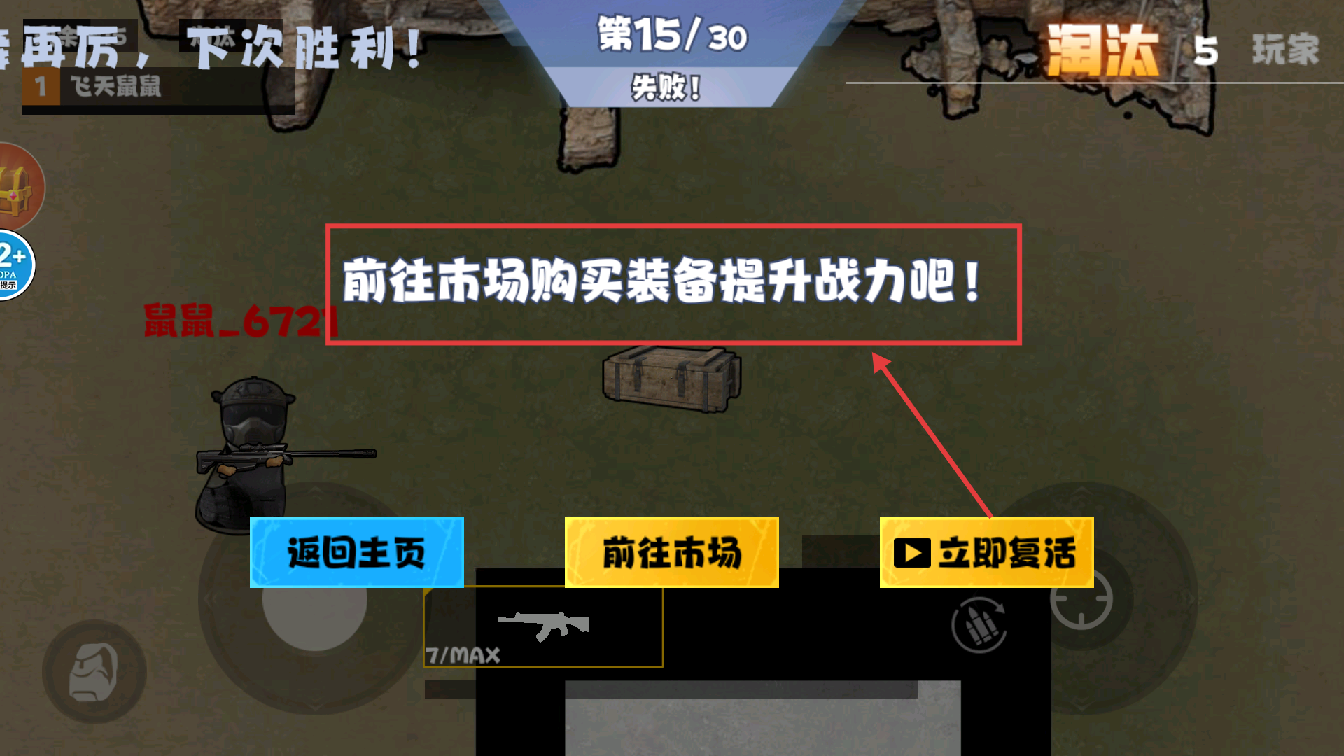 4、挑战失败后,可点击【前往市场】购买装备,提升战力后再次参与射击生存挑战。