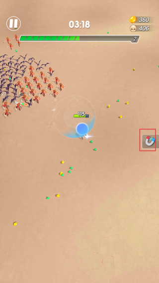 3、使用磁铁功能,收集散落的资源,提升资源获取效率,加快发展进度。