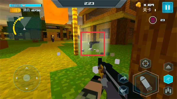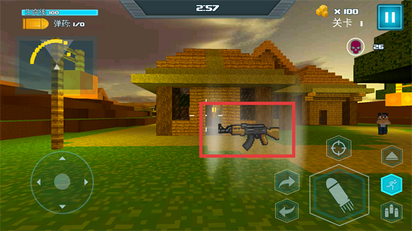 2、游戏中,拾取红色框内的枪械,用于攻击敌人和自我防卫。