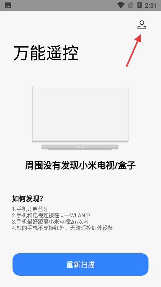 1、打开app,点击右上角个人图标。