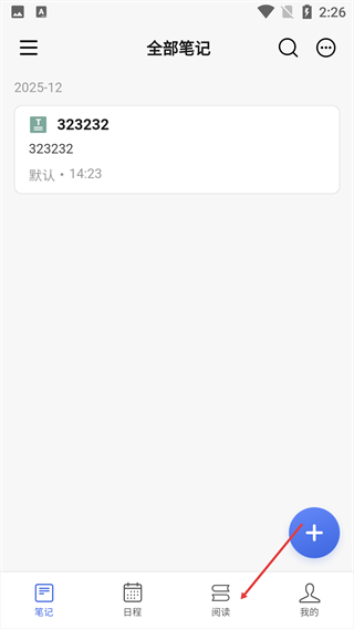1、点击底部导航栏的【阅读】选项,切换至阅读模块页面。