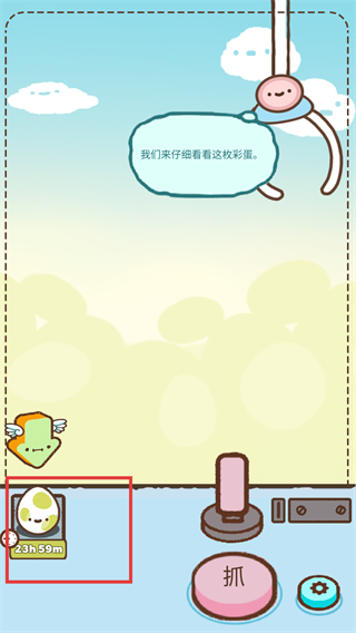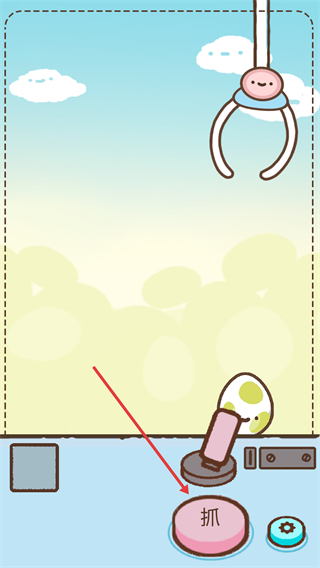 1、调整好抓子位置后,在抓娃娃界面,点击【抓】按钮,尝试抓取彩蛋。