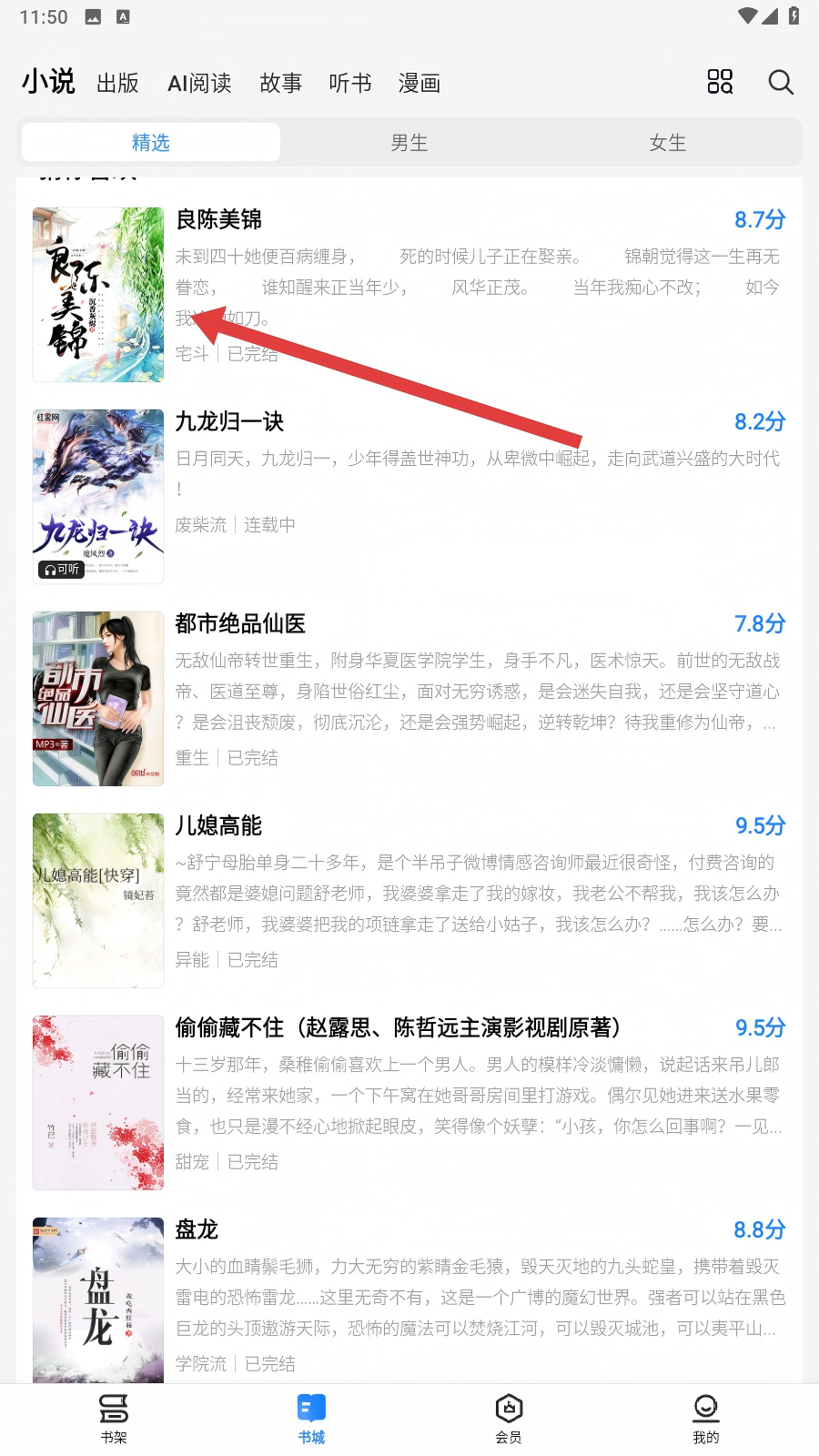 2、在小说分类中,找到偏好的小说比如【良陈美锦】,点击进入其详情页面呀。