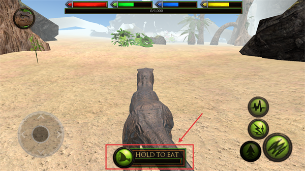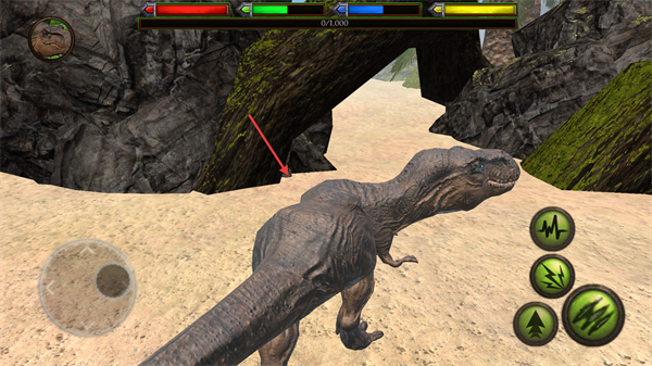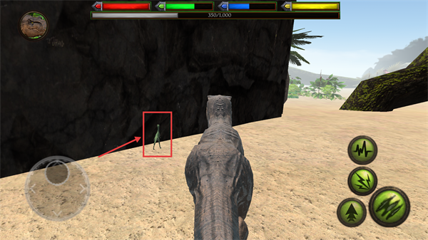 1、控制恐龙在岩石区域探索,寻找食物与水源,为生存积累基础资源。