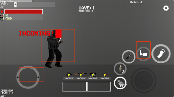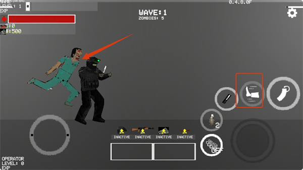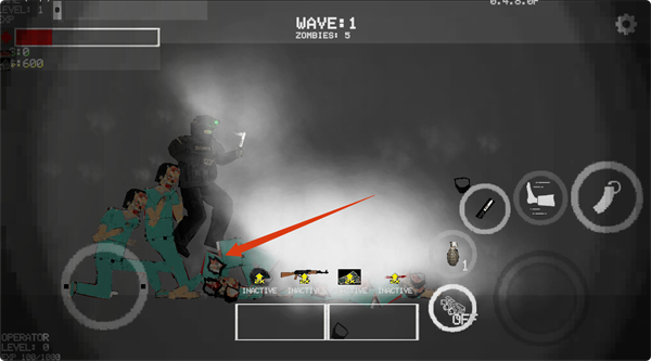 2、操控角色移动,利用右侧道具栏的武器和技能,应对即将到来的僵尸,提升生存几率。