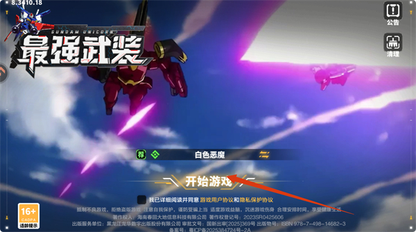 1、在游戏主界面,点击【开始游戏】按钮,进入《最强武装》开始机甲战斗之旅。