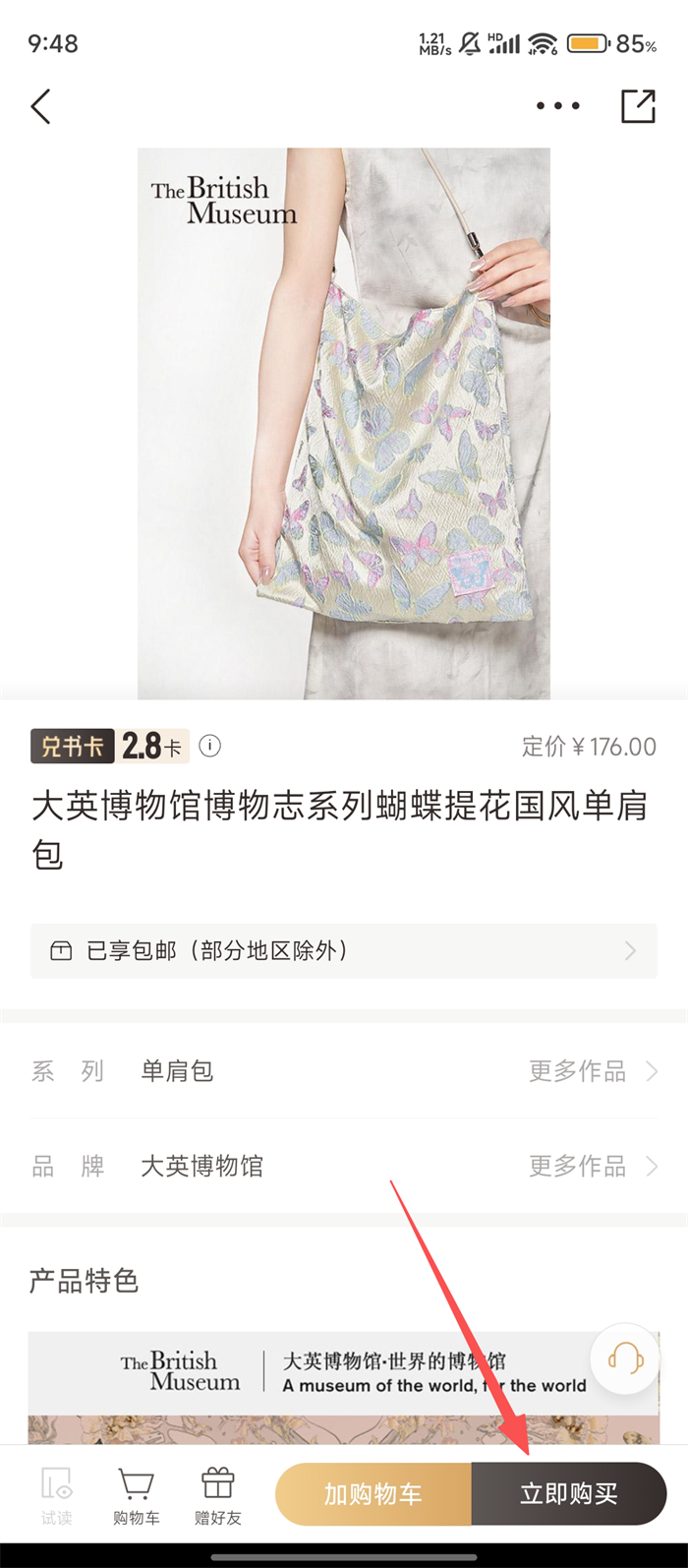 3、进入商品详情页后,确认商品信息无误,就可以点击【立即购买】按钮,进入订单确认环节啦。