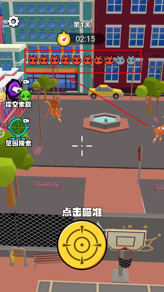 3、瞄准篮球架附近的隐藏外星人,用【子弹】武器精准射击,快速完成当前目标。