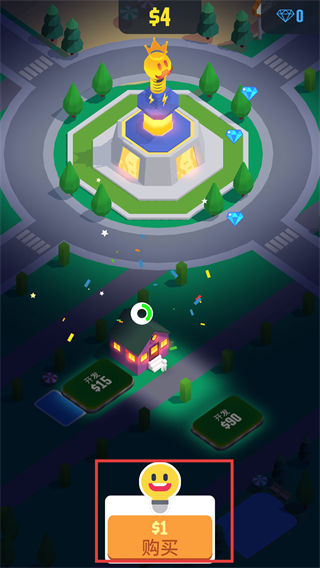 1、点击底部【$1-购买】按钮获取道具,这能帮你快速积累初始资源,为后续建筑开发打下基础。