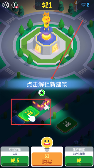 3、收集更多的灯泡来建造建筑物,将有不同的难度级别可供选择。