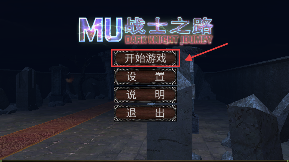 1、点击【开始游戏】按钮,即可进入【MU战士之路】的魔幻世界,开启冒险征程。