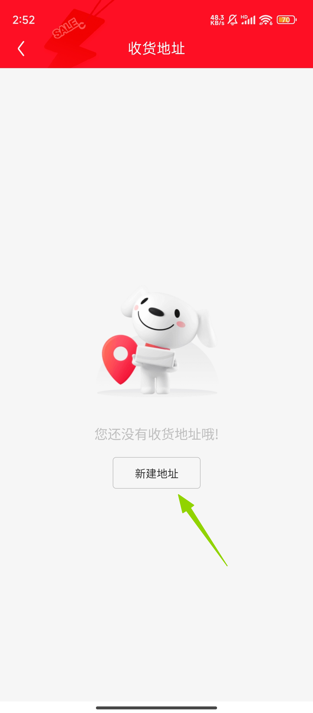 3、在收货地址界面,点击【新建地址】,进入新增收货地址页面。