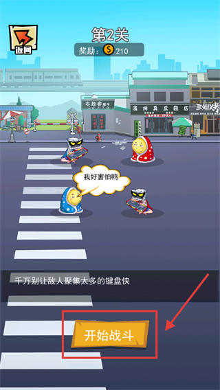 2、进入【第2关】,点击【开始战斗】按钮,需控制敌人中【键盘侠】的聚集数量。
