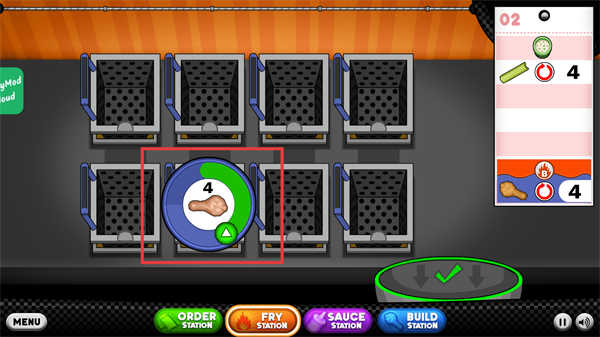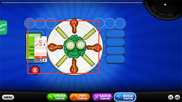 4、最后在组装环节,将炸鸡与配菜按订单要求摆盘,完成订单获取收益。