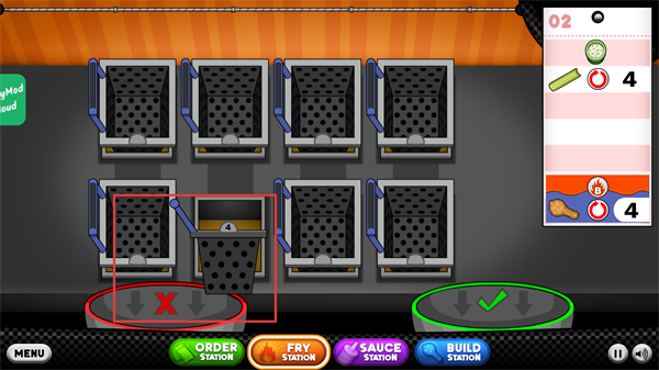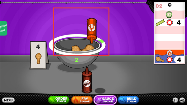 2、操作简易易上手,点击记录订单、拖动食材炸制、精准添加酱料,流程清晰直观,搭配箭头指引,新手也能快速独当一面。
