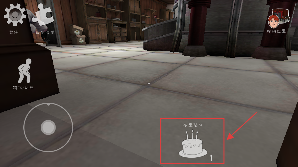 3、游戏中获得【布置陷阱】的蛋糕后,可在合适位置点击使用,布置陷阱阻碍迷你罗德等敌人,为解谜和逃离争取机会。