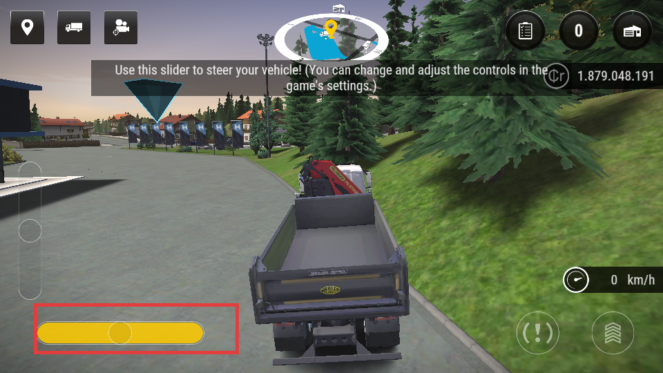 4、使用滑动条控制车辆转向,调整行驶方向,确保车辆顺利行驶,完成建筑工程任务。