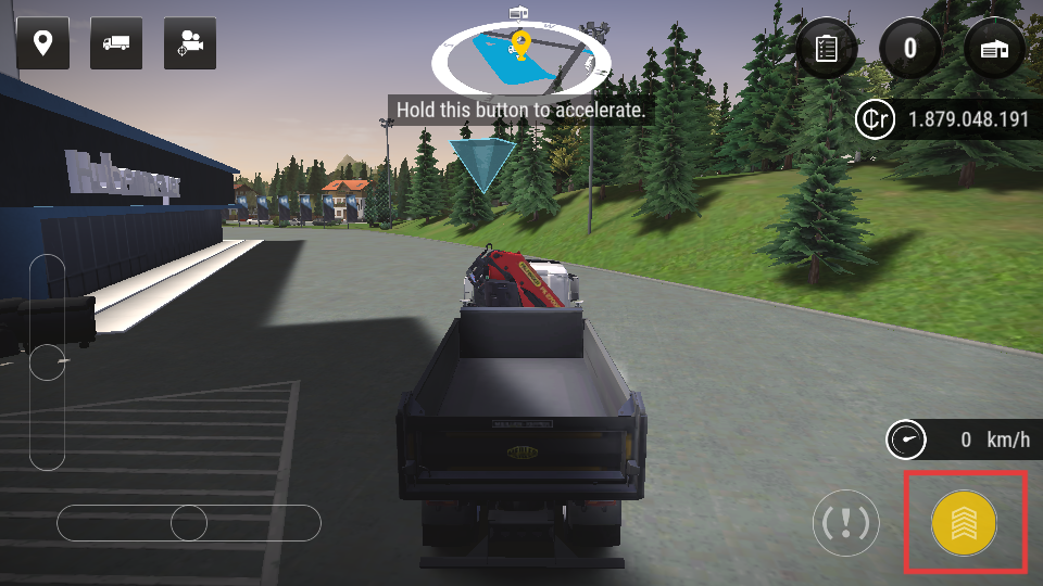 3、按住加速按钮,控制车辆加速,按照地图指引行驶到目标地点,完成工程运输。