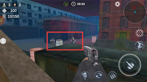 3、瞄准红框内的敌人,利用枪械连续攻击,击败目标推进关卡进度。