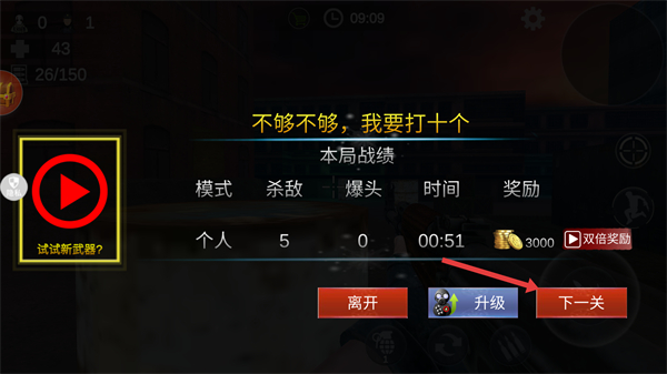 4、游戏结束后,点击【下一关】进入下一关卡继续战斗。