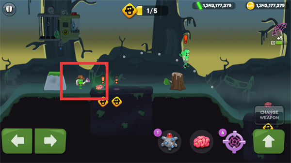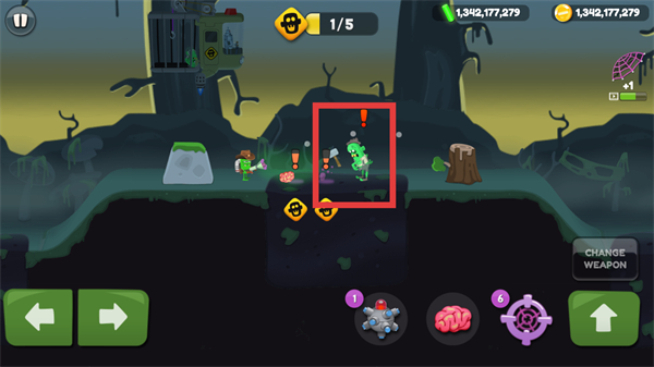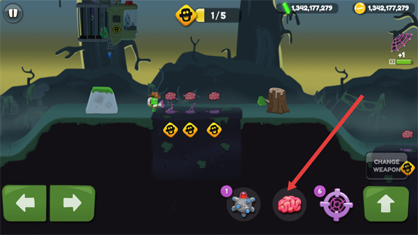 1、点击大脑图标投放诱饵,吸引特殊类型的目标僵尸。