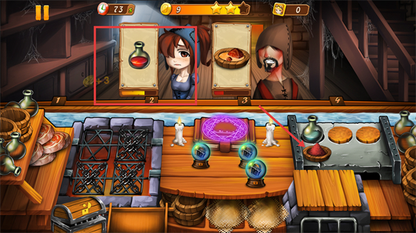 3、利用魔法阵等特殊设备进行烹饪,提升菜品和药剂的品质,同时关注多个顾客的订单需求,合理安排制作顺序,提高厨房的运营效率。