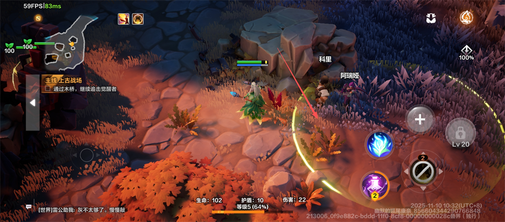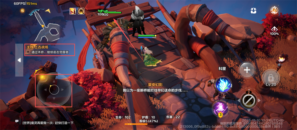 2、剧情过完后,用左下角的移动键操控角色,跟着任务指引过木桥,追击觉醒者,这样能顺利推进主线呢。