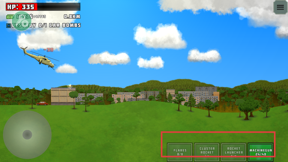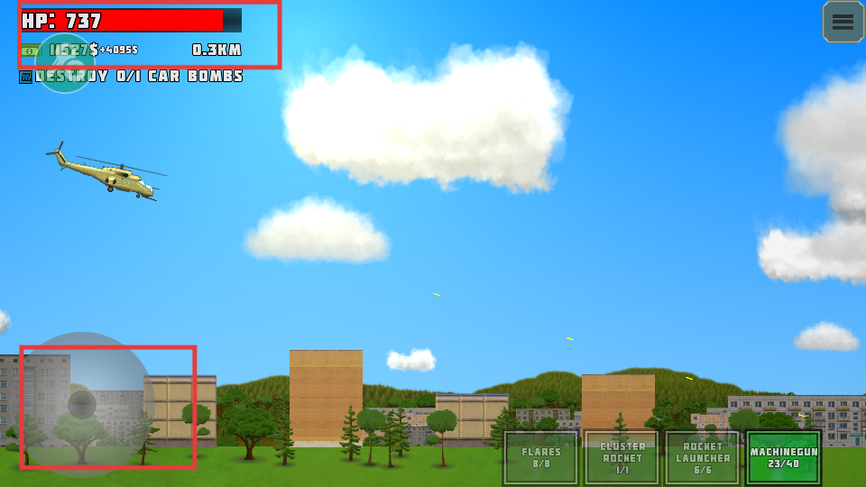 2、战斗中关注HP数值,操控直升机移动,注意规避伤害,推进任务进度。