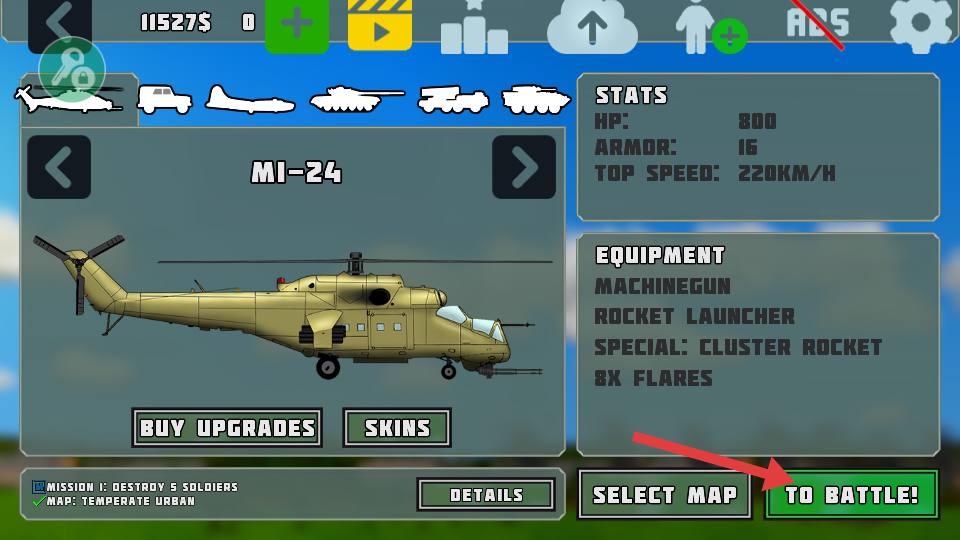 1、选择直升机,点击【TO-BATTLE!】,进入战斗场景,开始执行摧毁任务。