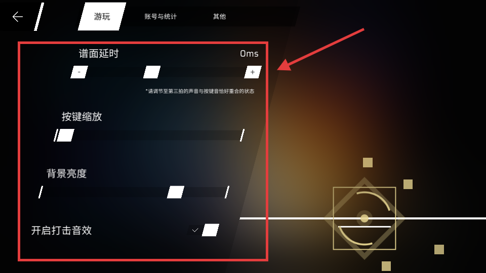 2、在游戏的设置界面中,可调整【谱面延时】【按键缩放】等参数,优化操作手感适配个人习惯,提升节奏点击的精准度与体验。