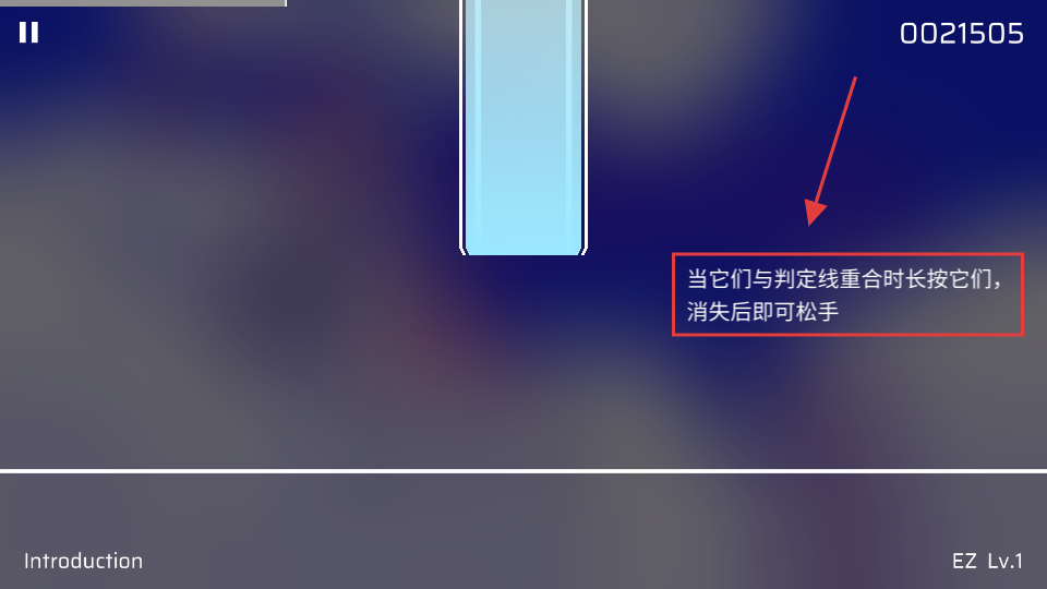 4、遇到特定音符时,需在其与判定线重合时长按,直至音符消失后再松手,以此完成正确操作判定,获取更高游戏评价。