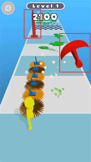 2、在关卡中,收集红色框内的橙色清洁刷,堆叠在角色身上,增加清洁能力。