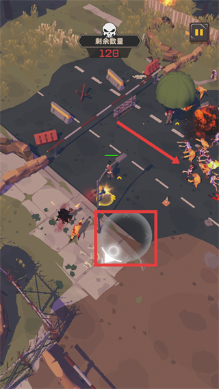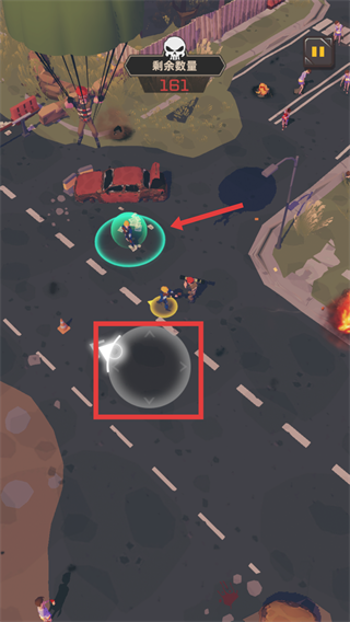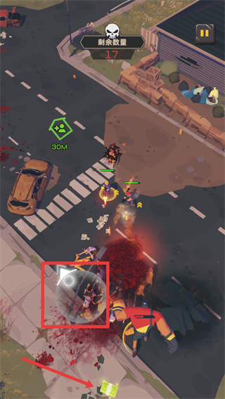 2、面对聚集的尸潮,借助【摇杆】灵活走位避开密集区域,持续输出的同时,关注敌方消减进度。