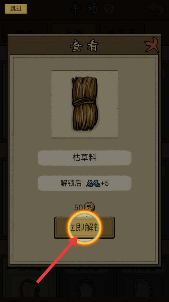 4、点击【立即解锁】枯草料,解锁后提升名气等级,助力游戏发展。