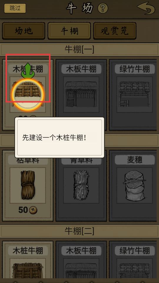 3、在牛场中建设【木桩牛棚】,完善牛场设施,为养牛提供基础条件。